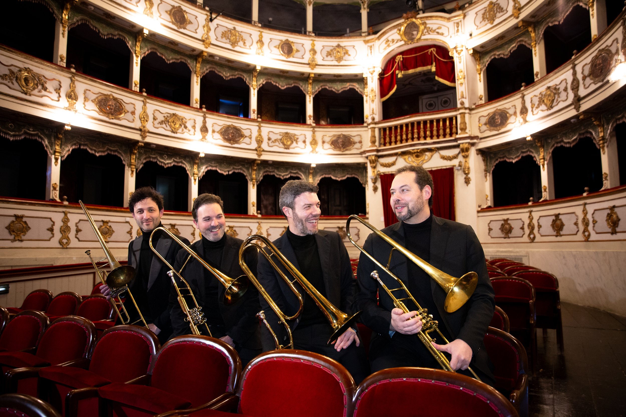 The Mascoulisse Quartet, composed of trombonists Stefano Belotti, Alberto Pedretti, Fabio De Cataldo, Antonio Mascherpa and Davide Biglieni, all graduated with top marks, honors, and mentions from the 'Luca Marenzio' Conservatory of Brescia and Gaetano Donizetti of Bergamo. Since its inception in 2006, the Quartet has performed in over 650 concerts across Italy, Europe, Macao, Hong Kong, the United States, and Oman. Their performances have graced prestigious venues such as Teatro Franco Parenti for the Società del Quartetto in Milan, Teatro Massimo in Pescara, Teatro Ristori in Verona, Duomo in Milan, Lugo Cathedral in Spain, the Inauguration of the ROHMA Theatre in Muscat (Oman), Dom Pedro Theatre in Macao, Y-Theatre in Hong Kong, and many others.